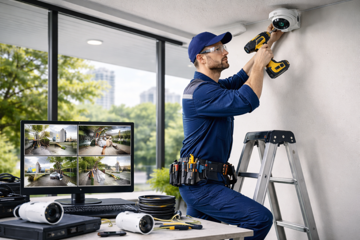 Secure your property with our professional CCTV camera installation services. We provide complete setup including camera installation, DVR configuration, wiring, and mobile monitoring access.
